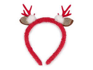 Párty čelenku zdobí malé sametové parůžky s dalšími vánočními přízdobami.