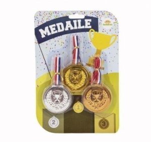 Tři medaile - zlatá, stříbrná, bronzová.