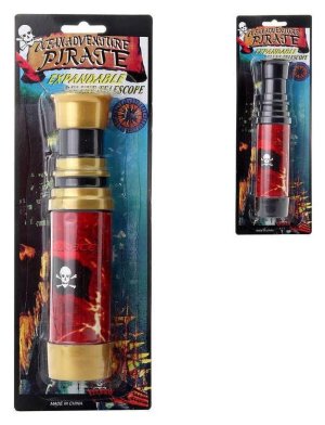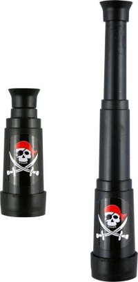 Dětský, pirátský vysunovací dalekohled z plastu , s motivem pirátské vlajky s lebkou, je nezbytným doplňkem každého malého piráta.