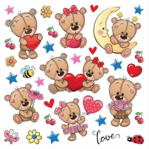 AG Design Samolepky na zeď Medvídci Love Samolepky lze aplikovat na jakékoliv hladké povrchy - dveře, skříňky, postel, hladká omítka, obklady atd..