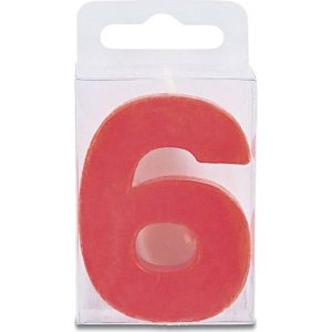 Svíčka ve tvaru číslice 6, výška 4 cm, červená barva.