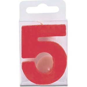 Svíčka ve tvaru číslice 5, výška 4 cm, červená barva.