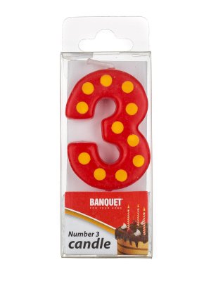 Svíčka narozeninová - číslo 3, velikost svíčky 5 x 3 cm, součástí svíčky je plastový bodec.