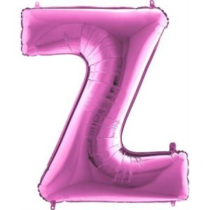 Růžový balónek písmeno Z. Balónek je vyrobený z pevné fólie.
