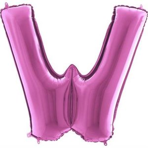 Růžový balónek písmeno W. Balónek je vyrobený z pevné fólie.