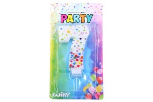 Svíčka ve tvaru číslice 7, výška 4 centimetry, bílá.