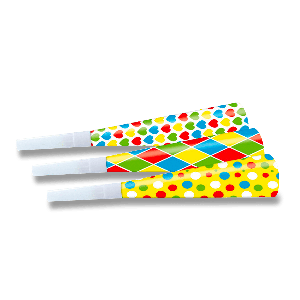 Papírové párty trumpety TEČKY o velikosti 20 cm.
