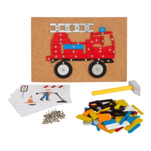 Rozměry tabulky: 30x21x1 cm Rozměry kladiva: 14x6x2 cm Věk: 3+ Materiál: dřevo, korek, kov