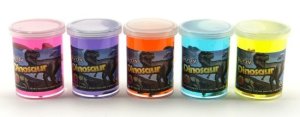 Zábavná slizovitá hmota s dinosaurem pro děti v různých variantách provedení, ukrývající v sobě nejrůznější druhy dinosaurů, v plastovém kelímku.
