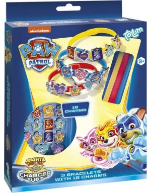 Balení obsahuje tři silikonové náramky (žlutý, růžový, fialový), 18 ks různých druhů doplňků.