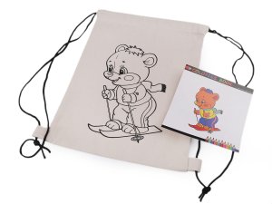 Bavlněný pytlík na přezůvky má na přední straně potisk s obrázkem.