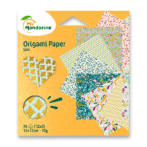 Oboustranně potištěné papíry pro skládání Origami s motivy obsahující zlaté prvky.