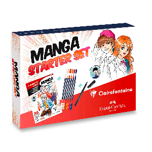 Kreativní sada Clairefontaine Manga Starter Set navržená ve spolupráci se značkou Faber-Castell obsahuje veškeré materiály, které potřebujete k naučení se kreslení a vybarvování mangy lihovými fixy.