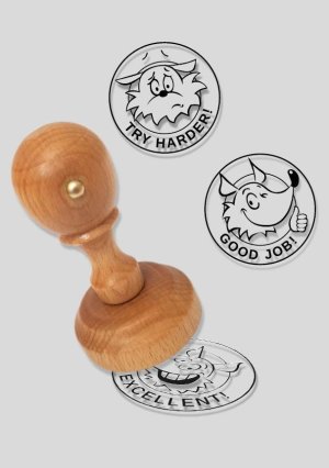 Set obsahuje celkem 9 razítek různé velikosti a modrou inkoustovou podušku v oblíbených dětských motivech.