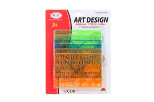 Sada obsahuje 6 plastových šablon s písmenky, číslicemi, tvary, znaky a obrázky.
