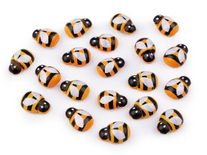 Dřevěné včely mají na spodní straně samolepicí pěnovou tečku.