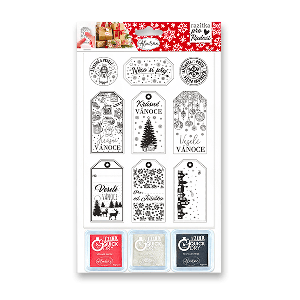 Gumová razítka Aladine Stamp with Love s motive Vánoční visačky na pěnové hmotě.