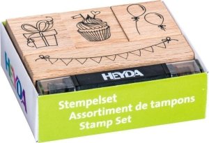 Razítkovací set obsahuje 4 ks dřevěných razítek různých velikostí a barvící tužku.