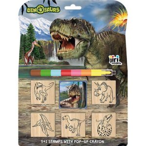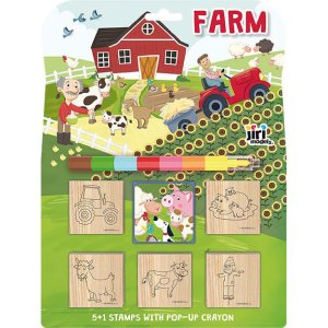 Set obsahuje 5 snadno uchopitelných dřevěných razítek, barevnou podušku s oblíbeným motivem a sedmibarevnou skládací voskovku pro vybarvování.