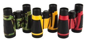 Plastový maskáčová dalekohled o velikosti cca 13,5 x 12 x 5 cm.