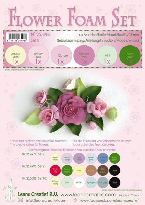 sada speciálních pěnovek na výrobu květin, formát A4 (21x29,7cm), tloušťka 0,8mm, 6 barev.