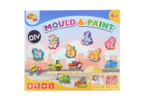 Balení obsahuje sádru, plastový kelímek, plastovou misku, plastovu formu s 6 různými motivy, 8 barviček k vybarvení, 2 štětečky,plastovou lžičku a dřevěnou špachtličku.