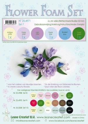 sada speciálních pěnovek na výrobu květin, formát A4 (21x29,7cm), tloušťka 0,8mm, 6 barev.