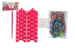 Výroba náramků z gumiček. Balení obsahuje stav a barevné gumičky.