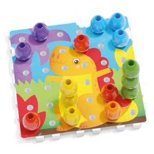 Mozaika pro nejmladší děti. Obsahuje 24 velkých knoflíků ve třech různých barvách a tvarech, 8 vzorových oboustranných karet a transparentní desku s otvory v inovovaném designu s rukojetí pro snadné …