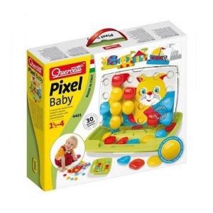 Mozaika pro nejmladší děti. Obsahuje 30 velkých knoflíků ve třech různých barvách a tvarech, 8 vzorových oboustranných karet a transparentní desku s otvory v inovovaném designu s rukojetí pro snadné …