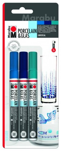 Marabu popisovač na porc. a sklo/sada 3x 12mm Ozdobte svůj porcelán v barvách moře!