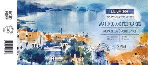 Akvarelové pohlednice jsou vyrobeny z tradičního bílého 100% bavlněného akvarelového papíru lisovaného za studena (300 g/m2).