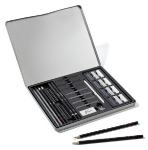 Profesionální skicovací sada Nassau Fine Art (30 ks) obsahuje grafitové tužky, uhly a doplňky pro kreslení a stínování.
