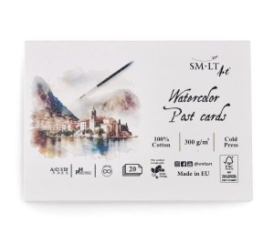 Akvarelové pohlednice jsou vyrobeny z tradičního bílého 100% bavlněného akvarelového papíru lisovaného za studena (300 g/m2).