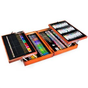 36 vodových barev v tubě, 34 pastelek, 54 voskových pastelů, 42 fixů, 4 štětců, 2 HB tužky, 1 guma, 1 strouhátko;...