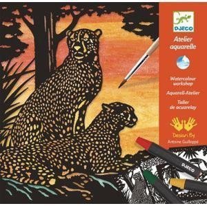 Kreativní sada pro děti od 6 let se 4 obrázky, které spojuje téma divokých zvířat a techniku akvarelového pozadí V sadě najdou děti 4 šablony s leopardy, krokodýlem, tygrem a tukanem Děti si pomocí akvarelových …