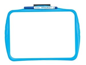Oboustranně stíratelná tabulka o rozměrech 19 x 29 cm s červeným rámečkem.