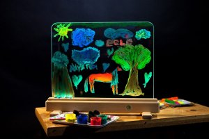 Kouzelná tabulka LED z naučné série PRESCHOOL! Fluoreskující záře vašich obrázků, písmen a slov vás přivede k úžasu! S LED Kouzelnou tabulkou a FLUO-fixy se můžete pořádně vyřádit a popustit uzdu své fantazii! Kromě toho se s pomocí předloh k malování a psaní učíte hravou formou. tabulka má 8 různých režimů podsvícení.