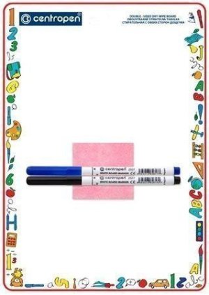 Sada obsahuje oboustranně stíratelnou tabulku formátu 24 x 18 cm a dva značkovače se speciálním inkoustem art. 2507 (art.2709).