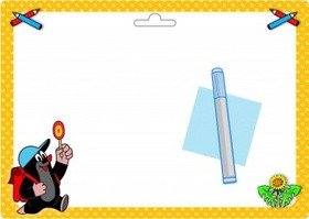 Oboustranně stíratelná tabulka o rozměrech 19 x 29 cm s červeným rámečkem.