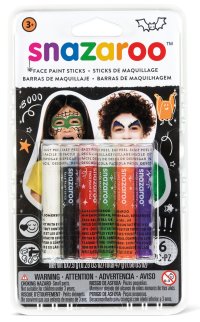 Sada 6 barevných tyčinek ve tvaru tužek pro malování na obličej a tělo Snazaroo . sešikmený hrot pro přesnější aplikaci ideální pro vytváření ornamentů, knírků a dalších ozdob vhodné pro obličej i tělo …
