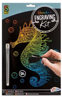 Vyškrabávací sada – 3 různé obrázky A4 – balení obsahuje obrázek + rydlo.