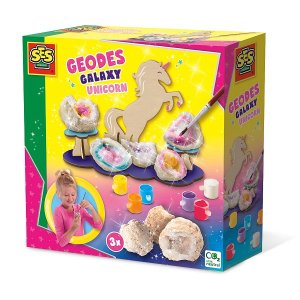 Objevte geody! S touto sadou od SES Creative mohou děti objevit skutečné krystaly a vystavit je na dřevěném stojanu pro jednorožce.