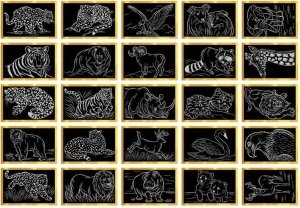 Obsah balení: 2 archy s předtištěnými škrabacími obrázky, oboustranné rydlo na vyškrabávání linií obrázku, 1 arch šablon.Návod: rydlem podle své fantazie vyškrabujte na černých plochách různé vzory.