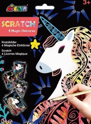 Použij dřevěné škrabátko, pomocí kterého odhalíš barevné obrázky s kouzelnými jednorožci a můžeš se i umělecky vyjádřit.