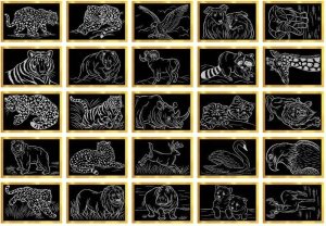 Vyškrabávací sada – 3 různé obrázky A4 – balení obsahuje obrázek + rydlo.