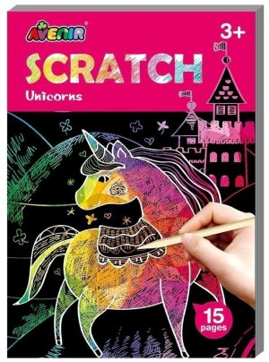 Zábavná mini knížka škrabacích obrázků na cesty! 15 zábavných stíracích stránek plných Jednorožců - připravených k odhalení pomocí speciálního škrabacího nástroje.