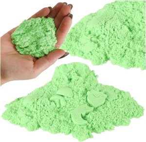 Zelený kinetický písek je ideální pro kreativní hraní doma!