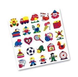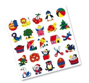 Nepostradatelná pomůcka do dětských kolektivů - identifikační značky pro nejmenší - obrázky místo jmenovek o rozměrech 4x4 cm, nalepovací, 25 kusů s jednoduchými barevnými veselými motivy.