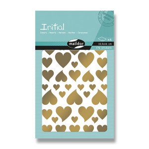 Samolepky Maildor Inital s různými velikostmi srdcí ve zlaté a stříbrné barvě.